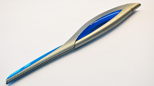 The bright blue Sochi 2014 Paralympic Winter Games torch combines design concepts of modern technology and a traditional Russian fairytale. The torch is meant to mirror the feather of the phoenix. The phoenix itself is a bird that is reborn from ashes once burned, a story traditionally told in Russia. The torch represents this principle or rising from ashes alongside the joy and good fortune that the feather is rumored to give