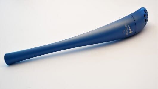 The Torch for the Torino 2006 Games is blue, with a sleek asymmetrical design.
