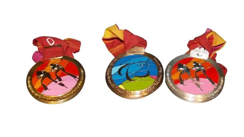 The Torino 2006 Paralympic Winter Games medals feature colourful designs in a range of shades on the face of the medal. The medal, weighing 251 grams, and measuring 7.5 cm in diameter and 0.6 cm in height, is the first of its kind from a Winter Games to feature the modern Agitos logo.